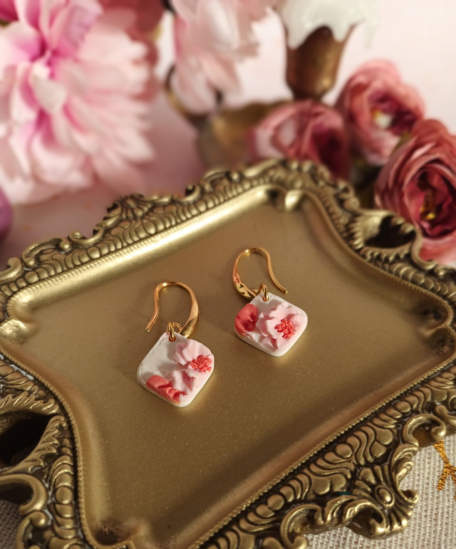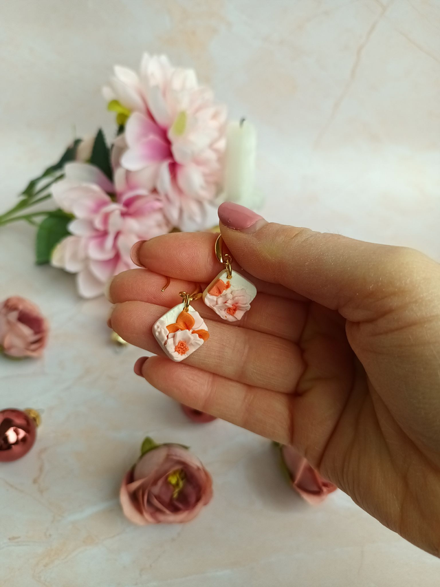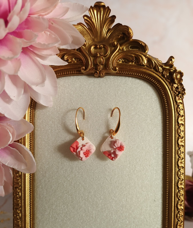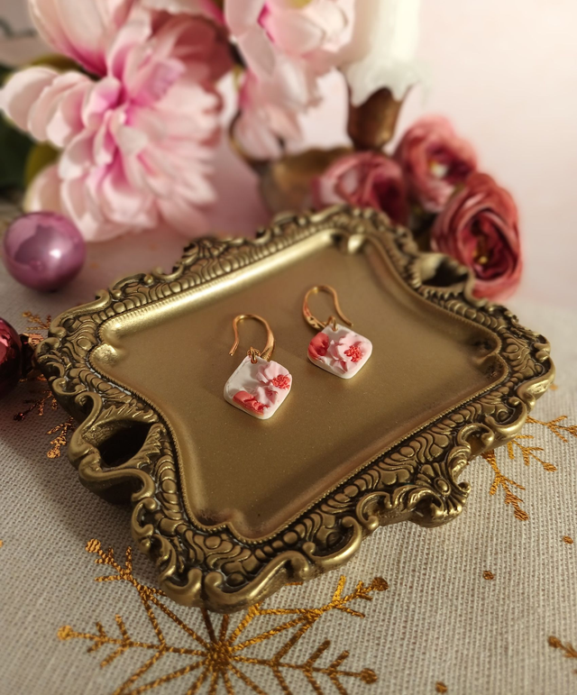 Cette paire de boucles d'oreilles en argile polymère, est façonnée à la main avec beaucoup de patience, de minutie et de délicatesse.