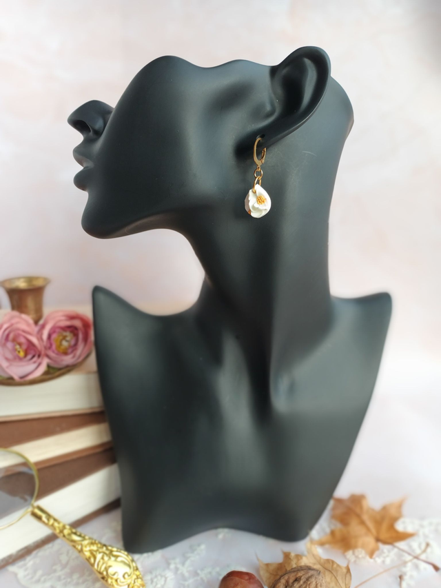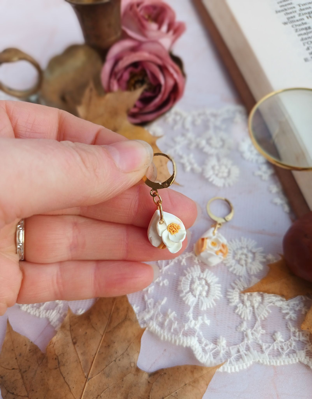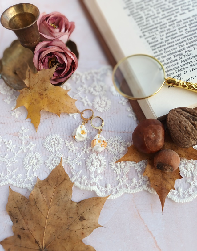 Paire de boucles d'oreilles en argile polymère, façonnée à la main avec beaucoup de minutie, de patience et de délicatesse.