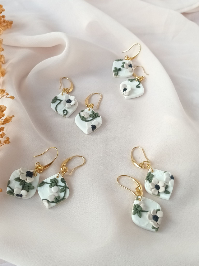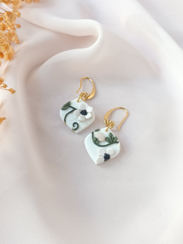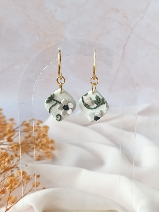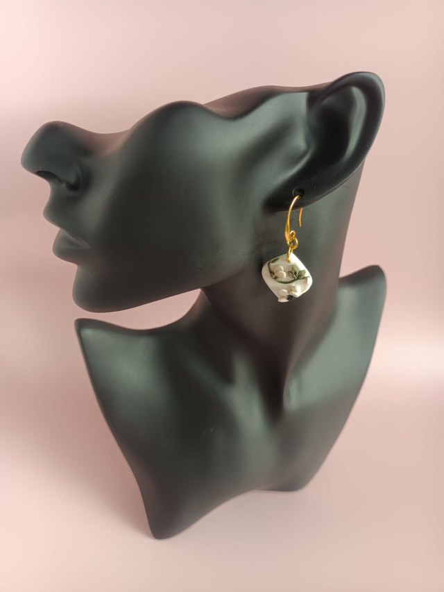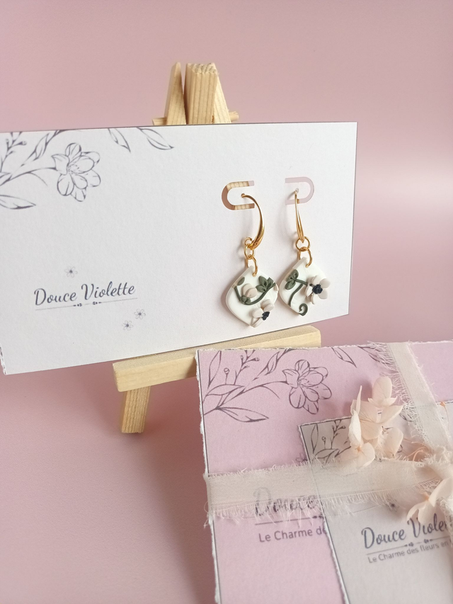 Paire de boucles d'oreilles en argile polymère, façonnée à la main avec beaucoup de minutie, de patience et de délicatesse.
